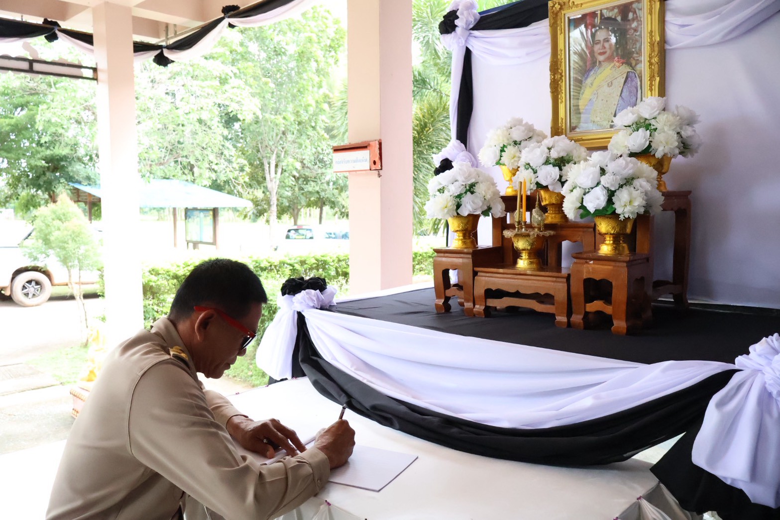 ร่วมลงนามถวายความอาลัยแด่สมเด็จพระนางเจ้าสิริกิติ์ พระบรมราชินีนาถ พระบรมราชชนนีพันปีหลวง ณ สำนักงานองค์การบริหารส่วนตำบลโคกเริงรมย์